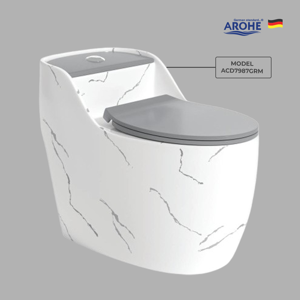 The Arohe Aesthetic Commode ACD7987GRM is not just a toilet; it’s a commitment to luxury, reliability, and advanced technology. Every component is meticulously designed to provide a seamless blend of form and functionality. From its elegant Gray-Marble exterior to the innovation embedded within, this commode offers a unique statement piece that elevates your bathroom decor.